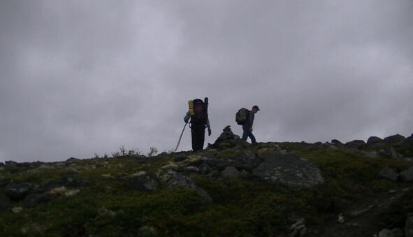 Начинает накрапывать дождь. Мелкий, но оттого не более приятный. Суко выдыхается, отстает все дальше и дальше. Останавливаемся, проверяем. Простудился, температура под 39. Не выдержал хрупкий организм уроженца Индонезии русских холодов. Достаю свою панацею настойку прополиса и заливаю ему в рот капель двадцать. Похорошело. Идем дальше. Хотя на вершине улыбка куда-то сползает. К тому же, над головой кружат гигантские крылатые демоны.