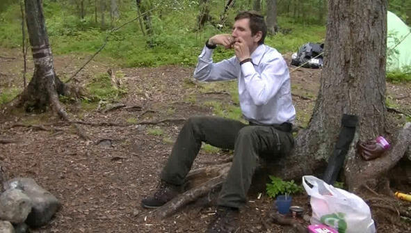 И костер развести нечем. Предшественники еще до нас весь сухостой в окрестностях уже подчистили и сожгли. Но мы в результате долгих поисков все-таки наскребли малую толику дров и запалили костер. Есть было нечего, в обед все доели.