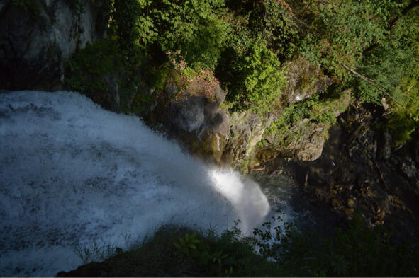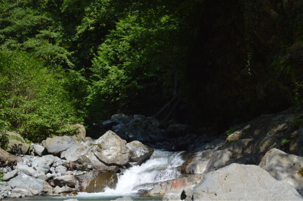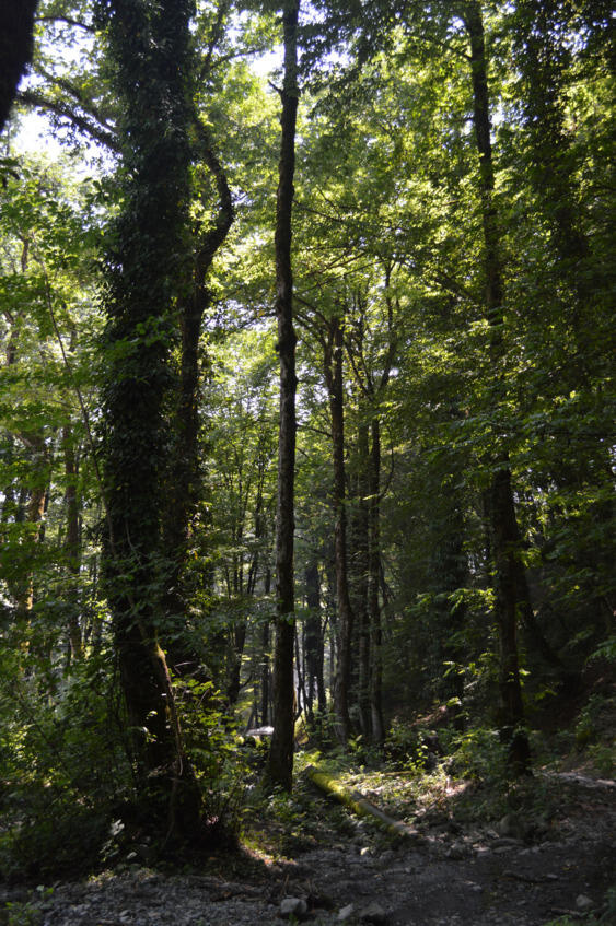 Спустившись вниз накупались и нафотались от души. Правда солнышко уже опускалось всё ниже и ниже и стало прохладновато. В связи с этим, пришло понимание, что надо рвать когти к машине. Обратный путь был намного более быстрым, так как шёл в основном под горку, но всё равно подмёрзли возле горной реки. Ещё засветло успели доехать до стоянки перед Администрацией Лагодехского заповедника, откуда начинаются остальные маршруты и легли спать. Начало следующего дня принесло небольшие разочарования. Шромский водопад (41.881945, 46.308800), до которого пришлось проделать такой же путь, как и вчера, был не большой, раз в пять меньше, посещённого вчера, Гергетского примерно как у нас в Долине Очарования возле Подкумка.