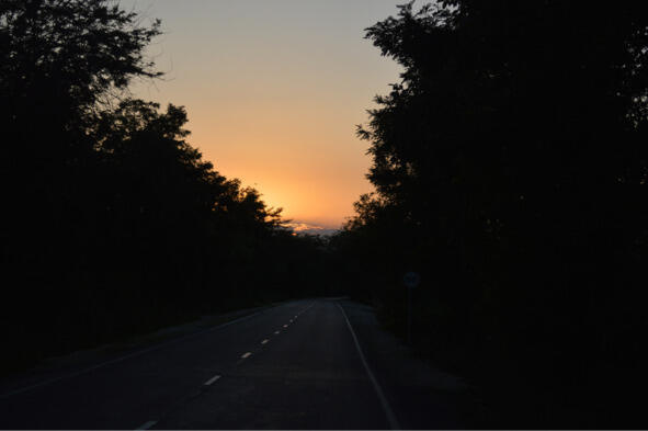 Вдруг, внизу машины послышалось какое то дребезжание. Остановка и проверка всех доступных узлов ни к чему не привела. Причём, било очень серьезно, как будто кувалдой по наковальне и часто. Пришлось остановиться ещё. Было выявлено, что крепление радиатора потеряло все болты и болтыхалось во все стороны. Оно могло протереть или попросту разбить радиатор, а тогда мама не горюй!. Разобрал морду, нашёл другие болты, прикрутил крепление. На закат, в итоге, в Сигнахи опоздали и встретили его по дороге, а дребезжание продолжилось в том же духе, блин.