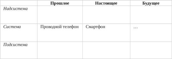 Системный оператор инструмент ТРИЗ, в котором три уровня системы (y) разложены на три временные зоны (x).