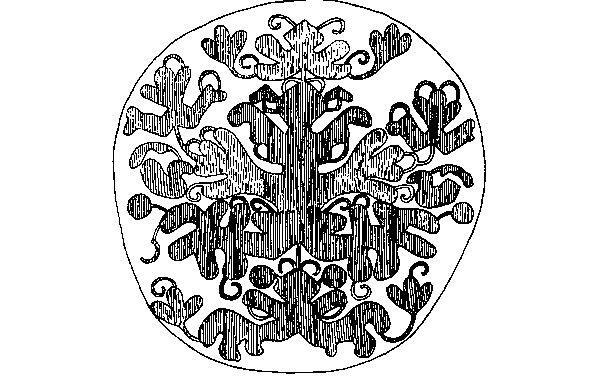 Рис. 3. Борушка тарногская. Золотое и серебряное шитье по карте. XIX в. Вологодский областной музей.