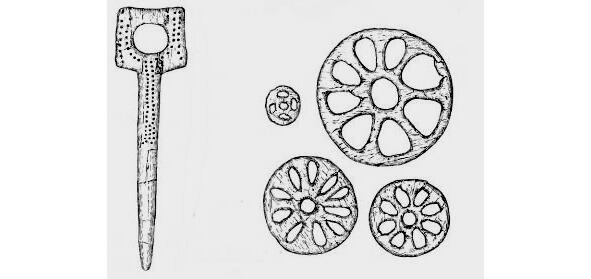 В древнем каменном веке впервые на изделиях из бивней мамонта, найденных на стоянке Мезин на Черниговщине (23 тыс. до н.э.) появляется еще один тип орнамента мотив меандра и свастики.