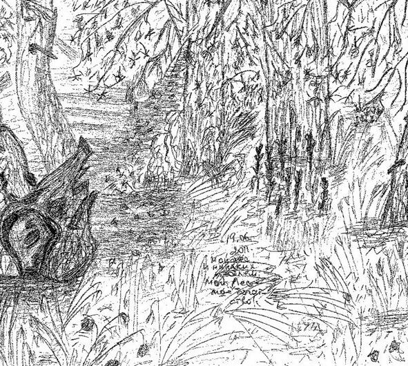 Ручей все так же звенел в тиши лесной чащи. Ничто за это время не нарушило покой и забытость этого места. Шалашик стоял на берегу ручья и придавал пейзажу некоторую уютность. Или ей так казалось Потому что внутри него всегда она находила его его яркие карие глаза встречали её ещё у порога.