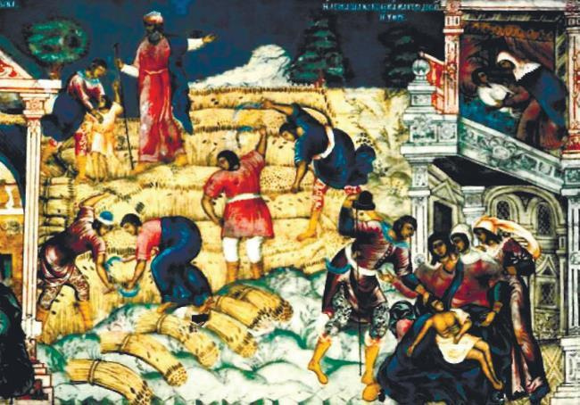 Гурий Никитин, Сила Савин. Рождение Ильи Пророка. Фреска. ХVII в. Ярославль. Церковь Ильи Пророка