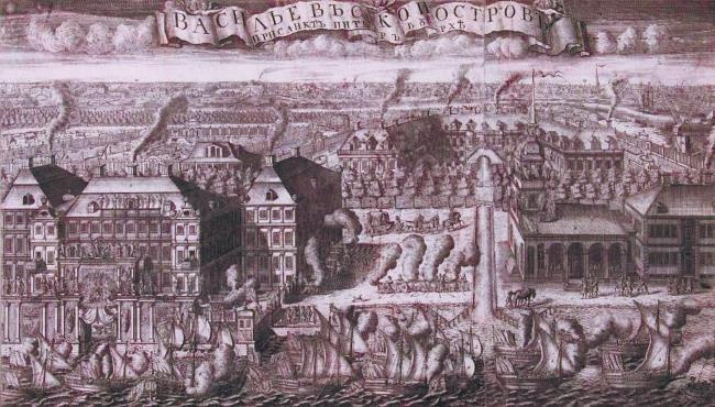 Зубов А. Ф. 1715. Пленные Шведские корабли, введённые в Санкт-Петербург после Гангутского сражения. Офорт