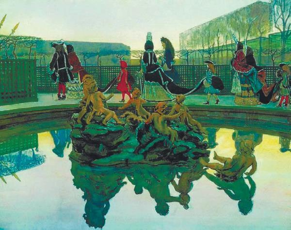 Начало ХХ в. ознаменовалось всплеском интереса к петровскому Петербургу. Отчасти это было связано с подготовкой и проведением торжеств по поводу 200-летия города. Тема петровского Петербурга нашла отражение в творчестве живописцев «Мира искусства». Идеолог этого объединения художественный критик, историк искусств, живописец и график Александр Николаевич Бенуа (18701960) всю жизнь вдохновлялся образами Петергофа, Павловска, Ораниенбаума. Для него это был эталон «стильности», «настроения истории», «эпошистости». В сравнении с видами Версаля времен Людовика ХIV второй излюбленной темой Бенуа, они показывают место петровского Петербурга в контексте европейской культуры. Сам художник расценивал эти произведения как призыв к эстетической реабилитации города XVIII в. и называл «историческим сентиментализмом». В большинстве его «петербургских версалей» нет фигур, авторское внимание приковано к природе и памятникам, а исторические реминисценции лишены событийности. Объектом художественного исследования являются не императоры и их деяния, а город в его исторической конкретике.