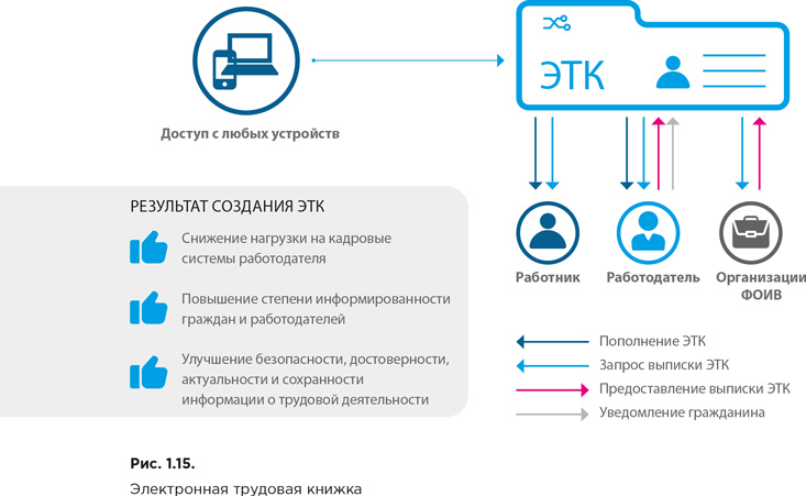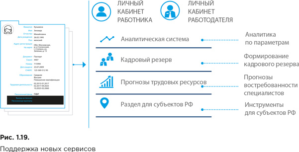 Государству электронная трудовая книжка позволит сформировать массив данных для создания новых сервисов, которыми будут пользоваться федеральные и региональные органы исполнительной власти (рис. 1.19).