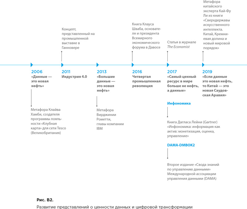 Некоторые ключевые этапы развития представлений о ценности данных и цифровой трансформации начиная с начала 2000-х отражены на рисунке В2.