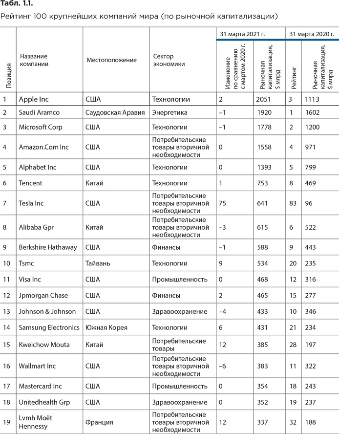 Давайте взглянем на рейтинг 100 крупнейших компаний мира (табл. 1.1)[18]: