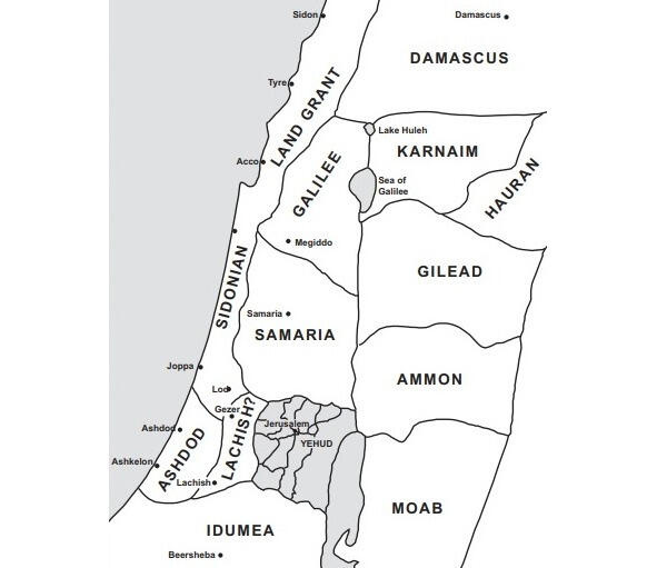 Сатрапия Заречье, в свою очередь, делилась на более мелкие провинции, в число которых входила Иудея (арам. Yəhud mədinta ср. yhwd mdynt в Ездр. 5, 8). Границы персидской Иудеи на севере проходили севернее Вефиля, на востоке по берегам Иордана и Мёртвого моря, на юге севернее Хеврона, а на западе доходили до Шефелы. Таким образом, она образовывала примерный прямоугольник 40 х 50 км площадью ок. 2000 кв. км. Во главе провинции Иудея стоял наместник (евр. pea, арам. paa <акк. (bēl) pīātim). Наряду с ним упоминаются также «начальники» (səganim), «князья» (śarim), «старейшины» (zəqanim) и «народное собрание» (qahal).