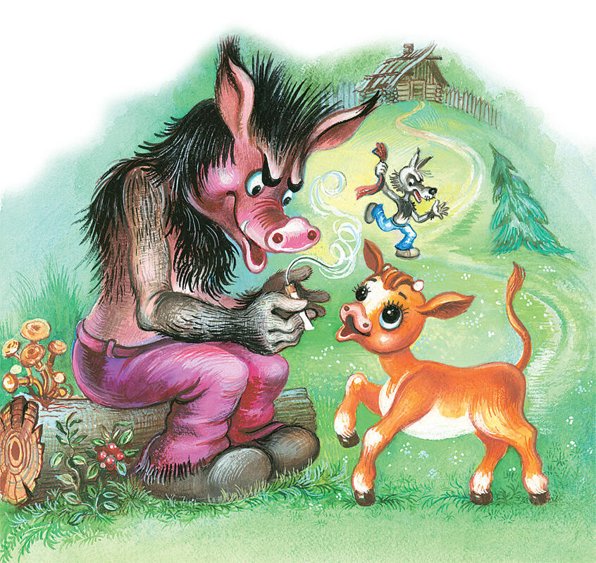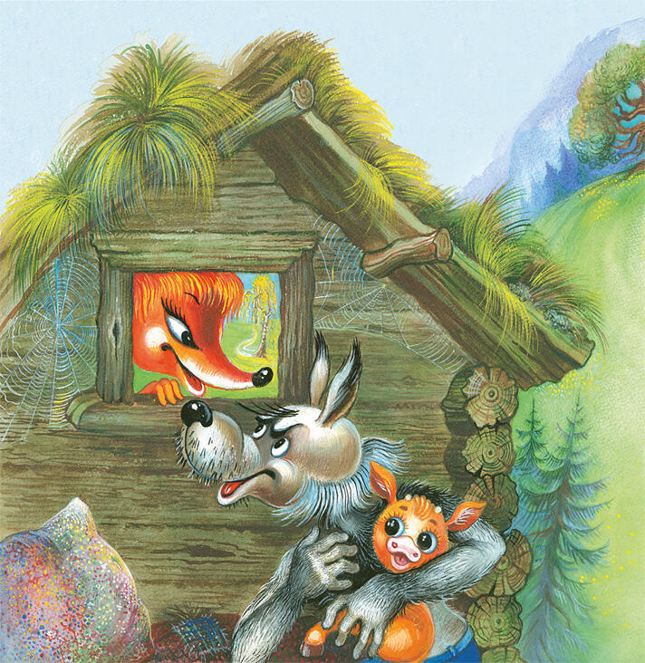 Однажды Волк украл в деревне Телёнка. Засунул в мешок и принёс к себе в избу. А там решил съесть его не спеша и с удовольствием. Вытряхнул из мешка и ахнул: