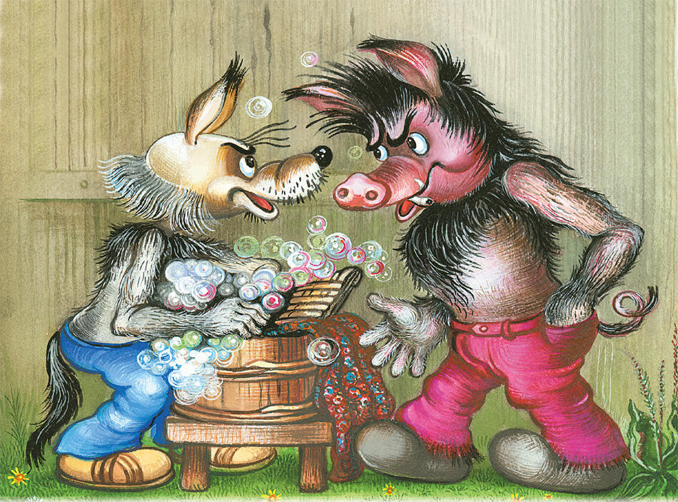 Побежал Телёнок на полянку, а Волк стирку затеял да сам с собой и разговаривает: