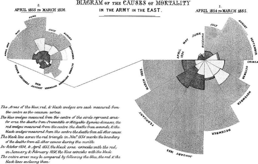 «Диаграмма причин смертности в армии на Востоке», опубликованная Флоренс Найтингейл в 850-страничном докладе о медицинском обслуживании в британской армии