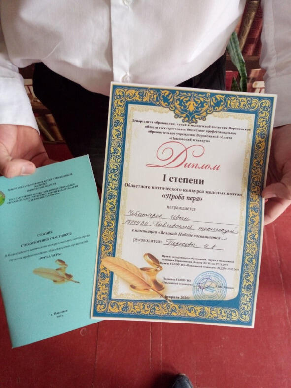 (Областной конкурс «Проба Пера» 2020г. Я тогда ещё шутил, сидя за столом с другими участниками, что вот сейчас меня пригласят на сцену в качестве победителя второй раз подряд. Дошутился)