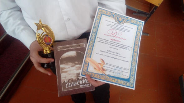 (2019 г., лауреат Всероссийского конкурса «Проба Пера». Помню, как волновался, ведь это было первое настоящее выступление, а затем и первые аплодисменты, награда, торжество)