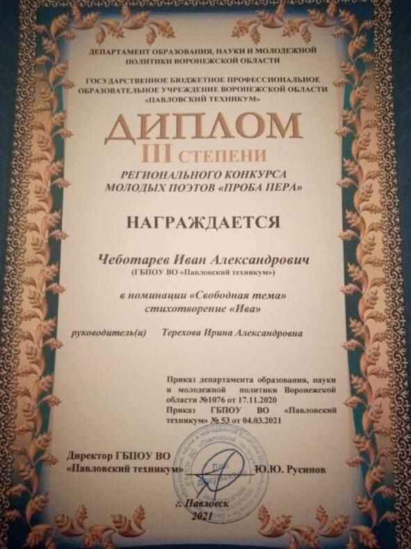 (2022 год, «Проба Пера», первое место. Приятно. Я заслужил. Четвёртый год подряд быть среди победителей «Пробы Пера» то, о чём я мечтал в отношении этого конкурса. Просто лучший!)