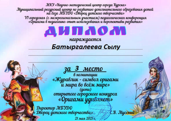Диплом по оригами в начале творческого пути