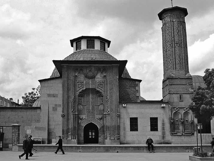 Частный архитектурный патронат представителей анатолийской администрации проявился в закладке медресе, готовивших не только (или даже не столько) исламское духовенство, но и резерв образованных чиновничьих кадров. Отказавшись от практики расширения мечетей до религиозно-учебных комплексов37, сельджукские заказчики предпочли разделить функции зданий. Внутри заимствованного из Ирана типа айванного медресе были продолжены поиски оптимальных пространственных, композиционных и конструктивных решений, отвечавших задачам организации обучения, медресе сдвоенные (Чифте-медресе в Кайсери), двухэтажные (Чифте минаре в Эрзеруме), с разным количеством айванов, со сводчатыми или купольными аудиториями, со специальными молитвенными помещениями (Гёк-медресе в Амасье, Буруджие и Гёк-медресе в Сивасе, Сырчалы в Конье и др.38), с размещением гробниц основателей внутри помещений медресе либо же с вынесением их за пределы основного объема При этом анатолийские медресе превратились в отдельно стоящие здания, стали самостоятельными пространственными объектами, приобрели фасады, отмеченные порталами и минаретами и, организуя вокруг себя пространство и конкурируя в городской панораме с большими мечетями, оказались новыми «точками конденсации» застройки.