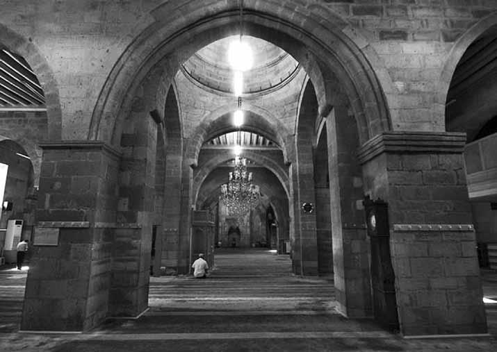 Данишмендидские и салтукидские мечети Улу-джами и Гюлюк-джами в Кайсери22, значительно перестроенные Улу-джами Сив аса и Эрзерума, представляют собой ориентированные по продольной оси базилики, разделенные на нефы стрельчатыми аркадами (иногда опирающимися на колонны-сполии), поддерживающими плоские перекрытия. Над геометрическим центром зала, предопределенным нечетным числом продольных нефов и поперечных травей, появляется световой колодец, оказывающийся не только источником верхнего света в интерьере, но и центральным элементом композиции. Таким образом, возрастание изолированности молитвенного зала мечети происходит за счет «втягивания» сахна в интерьер23. Два необходимых элемента, в классической арабской мечети следовавшие один за другим, в анатолийском варианте перестали быть последовательными: свет (сахн) не предваряет тень (зуллу), но оказывается окружен ею со всех сторон, становясь центром молитвенного пространства, не литургическим, но теологически оправданным. Первоисточником подобных имитаций двора могли оказаться как окруженные помещениями небольшие дворики ханов (караван-сараев) и медресе, так и синхронно формировавшаяся иранская айванная мечеть, в которой двор-сахн становится центром композиции. Не исключено, что Данишмендиды, претендовавшие на политическое лидерство среди тюрков Анатолии, сознательно обратились к персидскому памятнику, сделав тем самым посильное копирование только что появившегося образца частью своей политической риторики, аналогично тому как спустя полтора десятка лет купол исфаханской мечети вдохновил Артукидов на перестройку мечети в Сильване.
