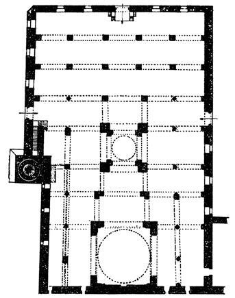 Важным элементом в артукидских мечетях стал купол над михрабной ячейкой плана, в Улу-джами (Шелахаддин Айюби-джами) Сильвана, перестроенной около 1157 г., он появился в подражание знаменитому куполу Низама аль-Мулька в Пятничной мечети Исфахана20, что свидетельствует о политических ориентирах восточно-анатолийских князей. Диаметр купола 13,5 м, т. е. чуть меньше персидского образца, практически равен длине михрабной оси старой мечети, и для погашения его распора понадобилось нарастить часть южной стены, укрепить ее контрфорсами, а с севера пристроить четвертый неф, центральные ячейки которого перекрыты крестовыми сводами. Подкупольное пространство с трех сторон ограничено одинаковыми аркадами из трех арок с более широкой центральной.