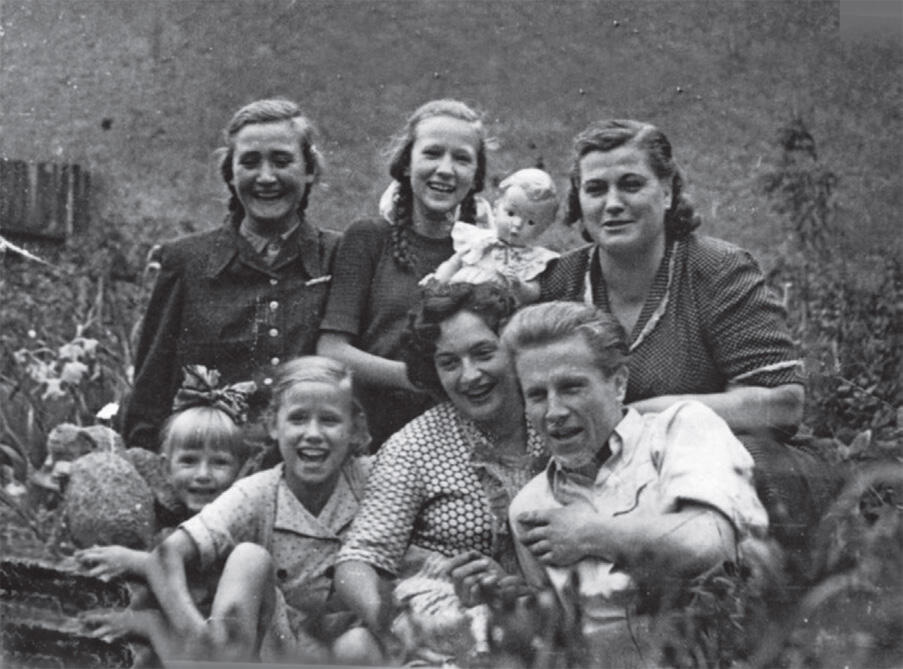В Белостоке у родителей; слева: сестры Ренэ Марыся и Ирена, Виктория и Ренэ; стоят справа: мама Ренэ, сестра Денис (Данка) и ее подруга Н.