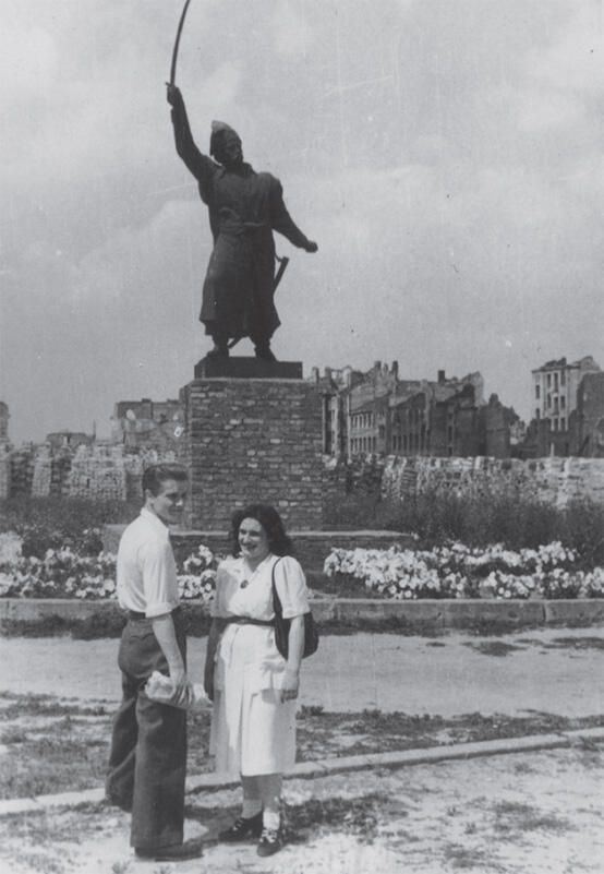 После приезда в Варшаву в 1950 г. Руины Старого города; Ренэ и Виктория у памятника Килиньскому