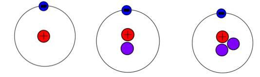 Рис.1.1. a) Протий б) Дейтерий в) Тритий