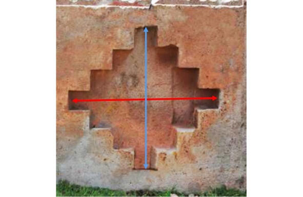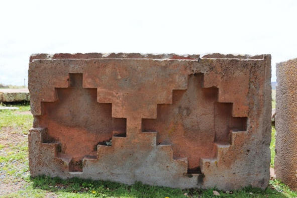 Рис. 28. Тиуанако. Пример одного блока с двумя углублениями на основе взаимно перпендикулярных ступеней (по 12 ступеней)