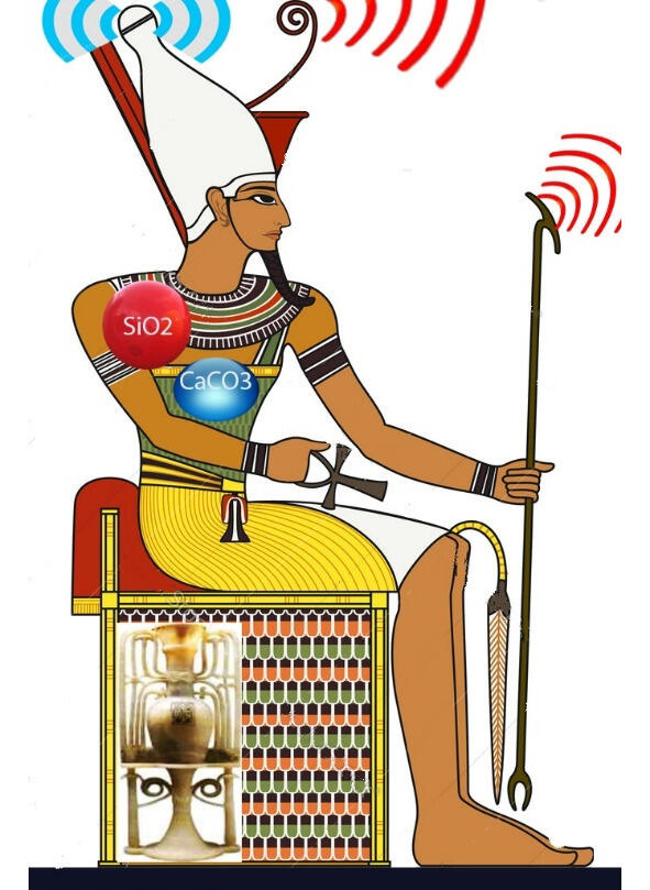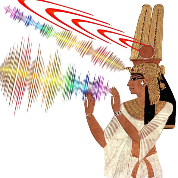 Посвященный занимался медитацией, в процессе которой увеличился в коллоидном растворе организма содержание кварца SiO2 и кальцита CaCO3, являющихся пьезоматериалами на которых в процессе пьезоэффекта генерируется ультразвук; внутри организма происходят резонансы в черепной коробке и других местах; колокольчик служил для активации резонансных процессов; анх в правой руке необходим для частотной настройки. При этом происходили резонансы и формирование: