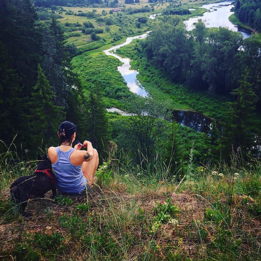 За моей спиной было поле с различными травами и цветами, а передо мной был обрыв, с него открывался вид на реку Сылва, на ее берега, леса вокруг и часть села Молёбка. Я смотрела на эту картину и представляла себя птицей, потому что видела всю красоту с высоты птичьего полета. Эмоции и чувства захватили меня. Я просто стояла и молча наслаждалась видом природы, открывшимся предо мной. Я наполнялась энергией и впитывала в себя чистый воздух этого места.