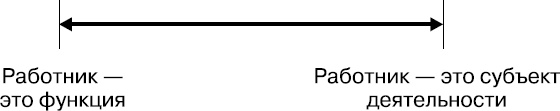 Оба этих признака, и в особенности второй, придают работникам, плененным этой парадигмой мышления, совершенно другую линию поведения и линию взаимодействия с со-трудниками. Изысканному принуждению людей к потребному нам поведению (техническая парадигма) здесь противостоит совместное созидание на основе принятого и согласованного понимания целей и своих ролей в деятельности (гуманитарная парадигма). Здесь отношению к работнику как к функции противостоит отношение к нему как к субъекту деятельности (рис. 1.3).