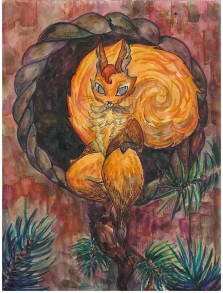Из дупла высунулась огненная мордочка с кисточками на ушках, зыркнула глазками-бусинами на путников: