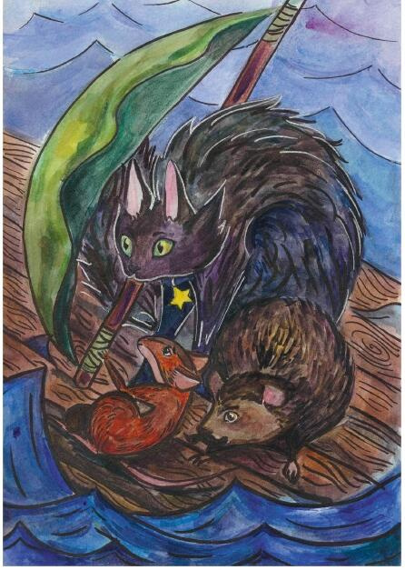 Соня гребла маленьким веслом из сухой коры, Е́жи грёб палкой: