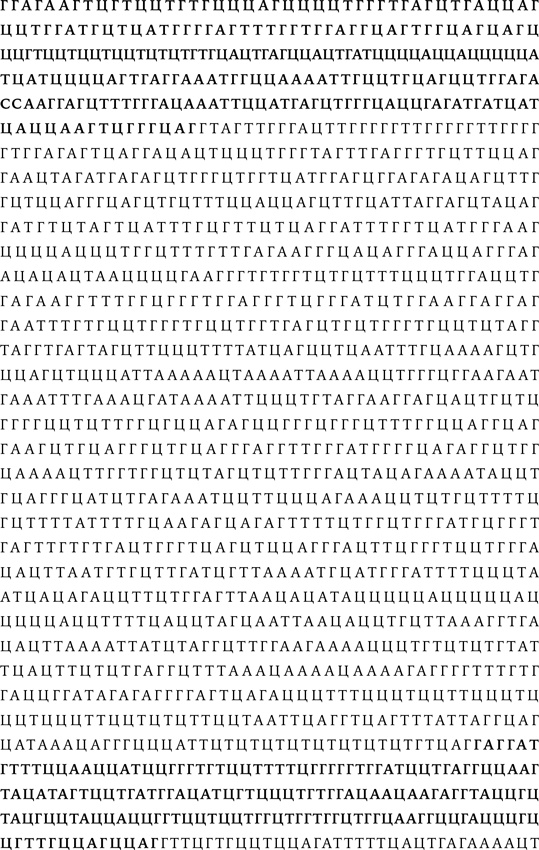 Три миллиарда оснований ДНК это ужасно много. Для наглядности вот фрагмент генетического кода человека: