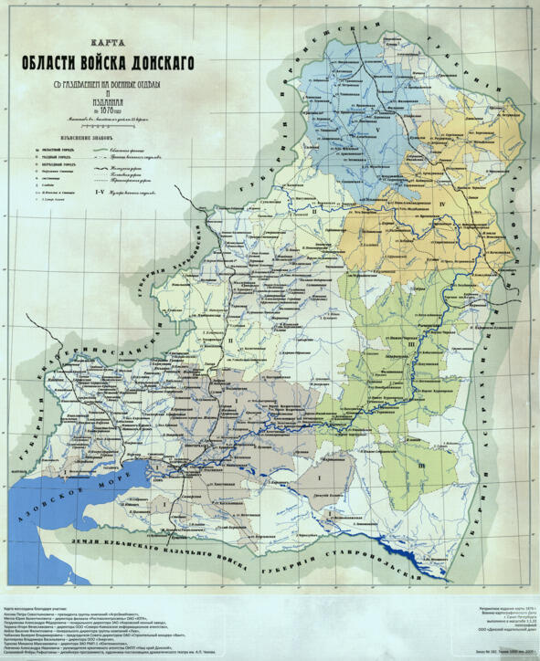 Карта Области Войска Донского с разделением на военные отделы и изданная в 1876 году