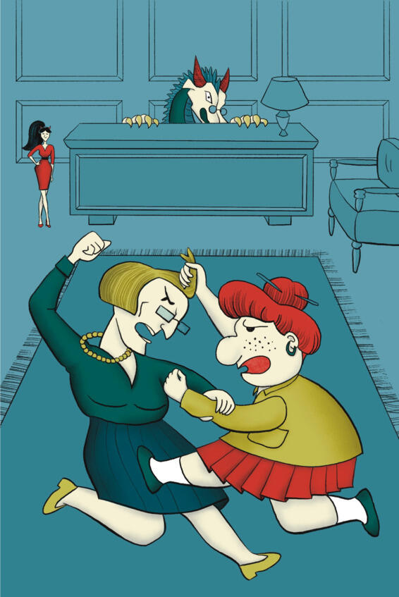 Посетительницы сцепились между собой, а Демон тем временем вызвал к себе по-тихому Алину. Бабули его почему-то пугали. Такие кого захочешь перекричат. Он испуганно спросил у секретарши: