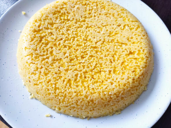 Пусть каша немного постоит под закрытой крышкой. Остывшую кукурузную кашу можно разрезать как пирог или съесть горячую.