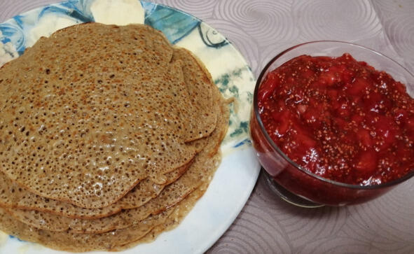 Зелёную гречку на ночь заливаем холодной водой, убираем в холодильник. Утром тщательно промываем холодной водой. Гречка слизкая это нормально. Я оставляю гречку до вечера на тарелке, прикрытой влажным полотенцем, но можно не проращивать, а сразу начинать готовить вот такие удивительно аппетитные блинчики.