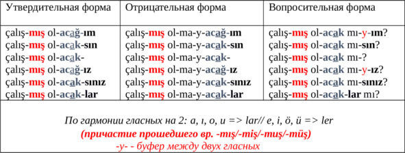 А. Проспрягайте глаголы в утвердительной, отрицательной и вопросительной форме будущего совершённого времени (-miş4 + olacak).