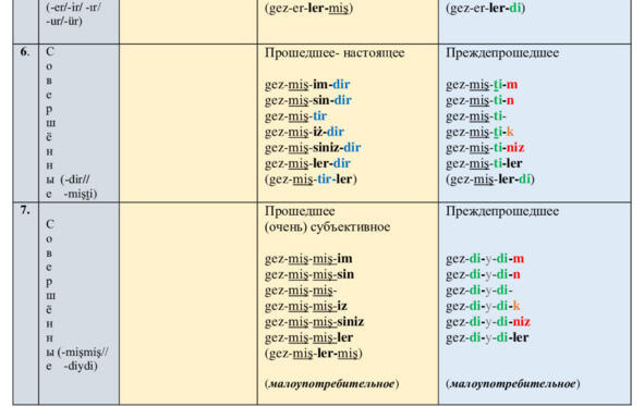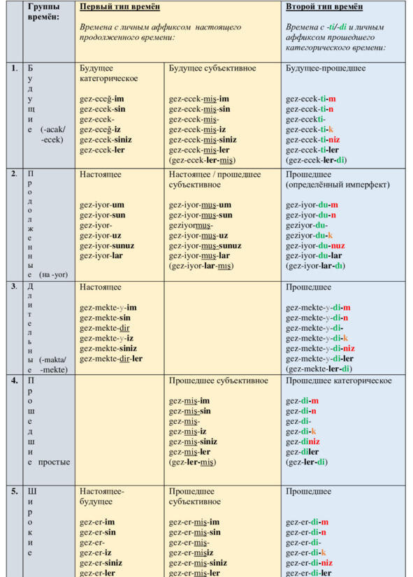 Если говорить про личные аффиксы во временах турецкого языка, то все основные * 17 времён можно разделить на 2 типа: