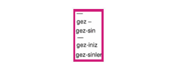 Bakmak.. (повелительное накл.) (посмотри), örneğin (например): bugün (сегодня) ben.. (притяжательное местоим.) (меня) ad.. (притяжательный афф.) (зовут) Huan (Хуан) Oliva (Олива), yarın ise (а завтра) ben.. (притяжательное местоим.) (меня) ad.. (притяжательный афф.) (зовут) Umberto (Умберто) Morales (Моралес).