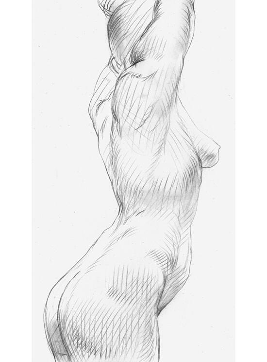 Дмитрий Горелышев. Набросок торса для изучения устройства и формы тела. Карандаш