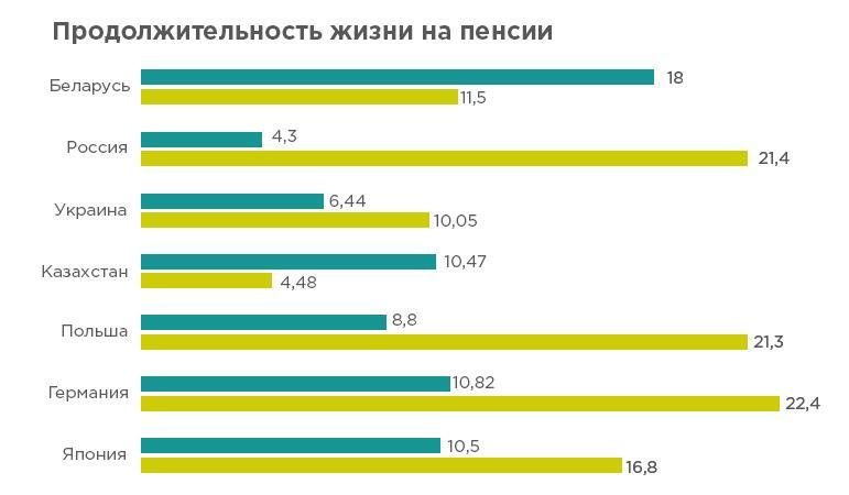 Очевидный вывод: пенсионный возраст в РФ и Беларуси примерно такой же, как в других странах. Но на г