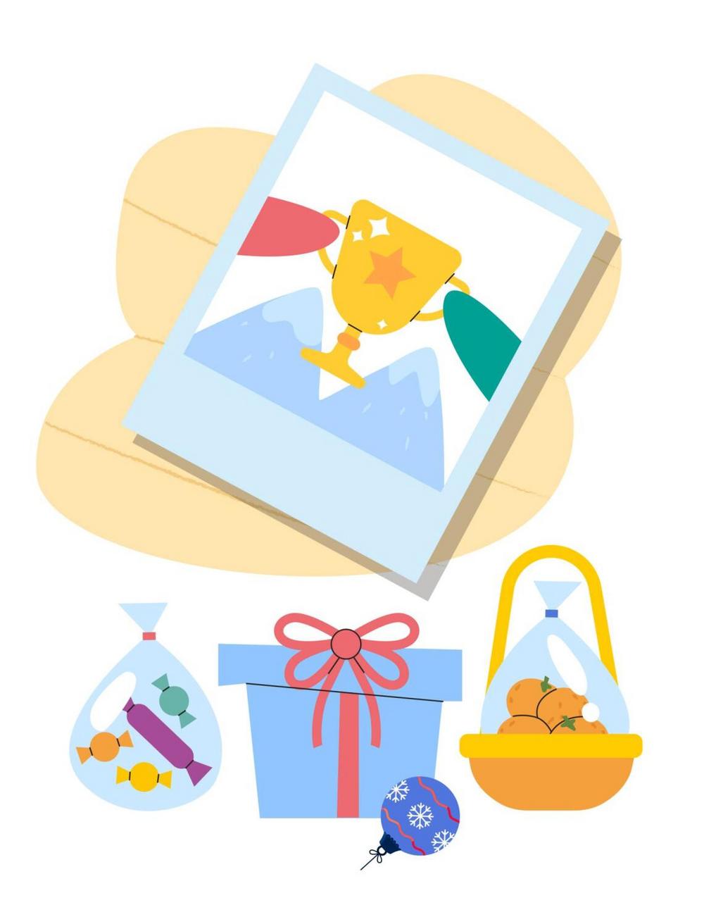 За третье место можно было получить корзинку ароматных мандаринов. За второе большой кулёк разнообразных конфет.
