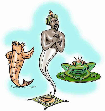 Волшебная Лягушка, Джин из старого кувшина, Золотая Рыбка! Я загадал вам три желанья: хохот, смех, улыбку!