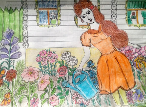 The girl grew up and turned into such a kind beauty, a needlewoman, like a fairy. Everything went well with her, she knew how to embroider, sew, and such things that the great masters did not even have such products.