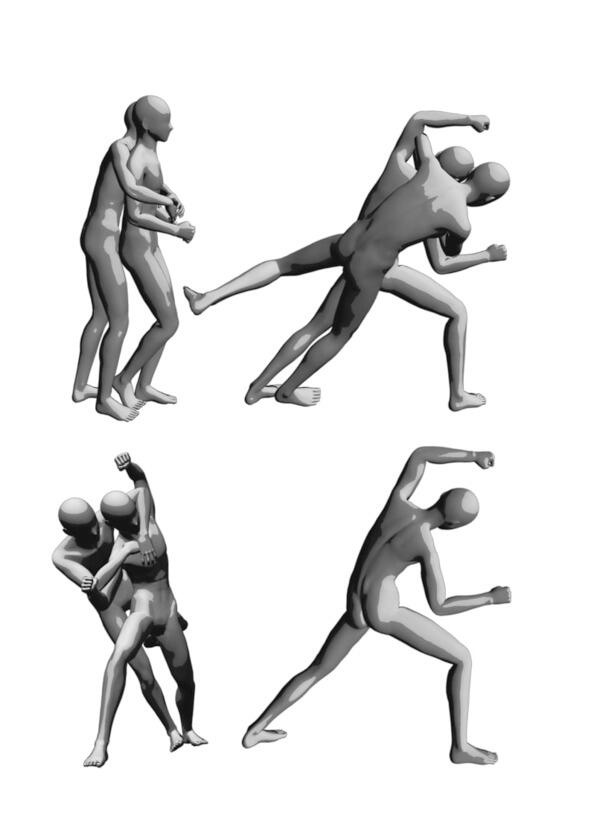 7 Если противник захватит меня за запястья, то я прижимаю кулаки к своим бокам, чтобы зафиксировать свои руки. Затем я наношу или обозначаю удар коленом, чтобы противник наклонился. Поворачиваюсь и бросаю противника через свою ногу.