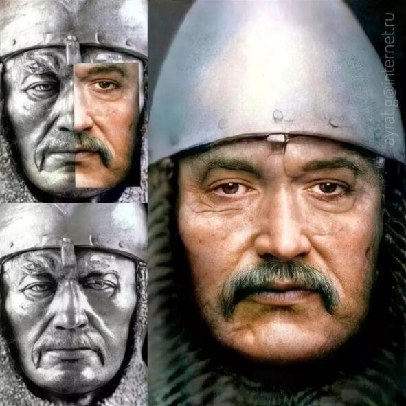 Изображение знатного половца XIIXIII вв., предположительно хана Боняка, из погребения близ села Квашниково, Саратовская обл. (художественная обработка @ayrat.g.art (Айрат Газизуллин))