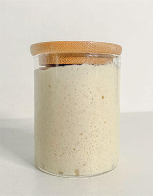 В таких заквасках муки в 2 раза больше, чем воды. По формуле расчета гидратации закваски это выглядит так: (50 г воды: 100 г муки) × 100 % = 50 %.